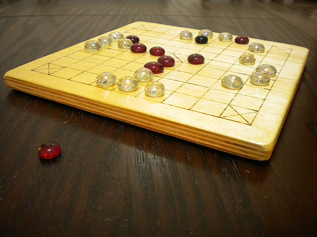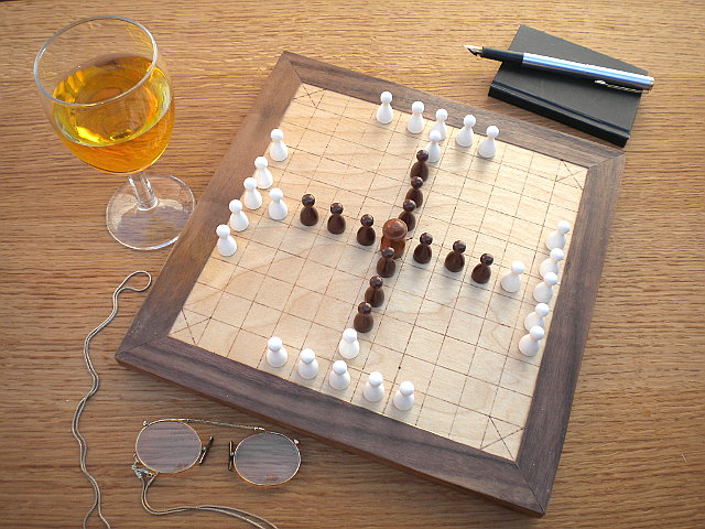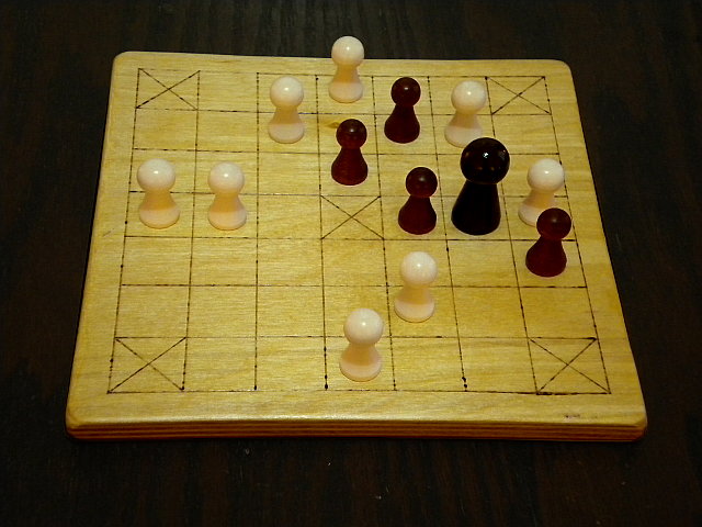 A game of sea battle tafl in progress on the Deluxe board.