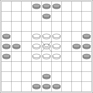 1. The game is played on a board of nine squares by nine, set up with 25 pieces as in the accompanying diagram.