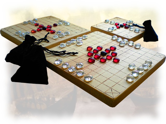 Sometimes called Longship tafl, sea battle tafl is a modern variant of hnefatafl. It's similar to the Tablut game played on the Brain King web site, with some tweaks applied by Aage Nielsen. Played on a 9x9 board, it gives a very balanced game. Aage reports that on the 11x11 board it gives too much advantage to the attackers, but I think that if the diamond formation of the defenders is swapped for a cross, the game might be ... (read more...)