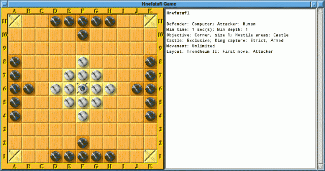 This means that, among other interesting games, you can now play the Fetlar version of hnefatafl accurately with the applet. The settings for Fetlar are as follows... Objective: Corner, size 1; Hostile areas: Castle; Castle: Exclusive; King capture: Strict, Armed; Movement: Unlimited; Layout: Trondheim II; First move: Attacker.