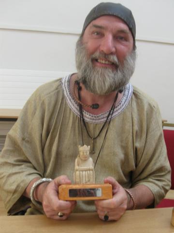 Last month saw the English National Hnefatafl Championships at Sutton Hoo, umpired by Tim Millar and organised as part of a larger event by Ealdfaeder Re-enactment Group. The senior competition was won by Pete Jennings; the final has been recorded, and I hope to present the game on here some time in the future. The Junior Section winner of the English Championships was Guinevere Ferry-Swain. Her sister Delilah was reserve champion.