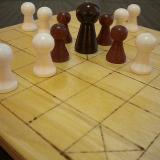 The game is hand-made in a rustic style. Please do not expect machine-made precision; there may therefore be blemishes in the work. Not suitable for young children due to small pieces.