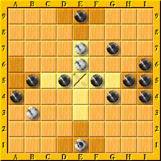 1. F9-G9 F5-F2 2. G9-G7 D5-D2xE2 3. E8-F8 E4-B4 4. D9-D5xC5 D2-C2 5. F8-F5xG5 F2-G2 6. F1-F4 G2-G5xF5 7. F4-F5xG5 C2-C5xD5 8. A6-D6 C5-C6xD6 9. B5-D5 C6-C5xD5 10. D1-D5 E3-H3 11. A5-B5xC5 H3-H4 12. E1-E4 B4-B3 13. E4-G4xH4 E5-E1++
